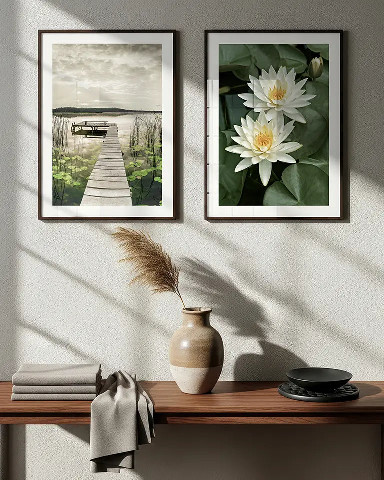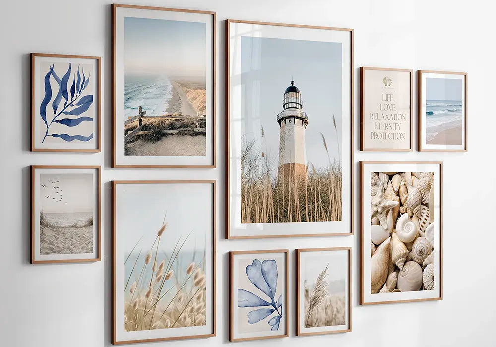 Deniz ve doğa tonlarından ilham alan güzel bir poster seçkisi. Mekâna ferah ve uyumlu bir görünüm kazandırır.