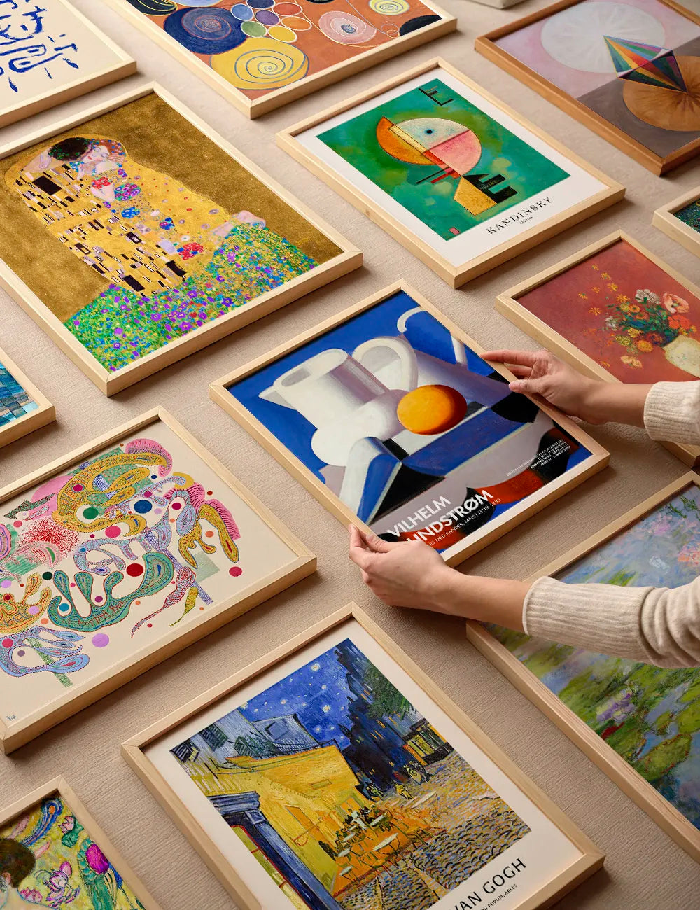 Sanat odaklı bir yaklaşım arayanlar için ünlü ressam posterleri koleksiyonu, Monet, Van Gogh ve Kandinsky gibi sanatçıların eserlerinden oluşur.