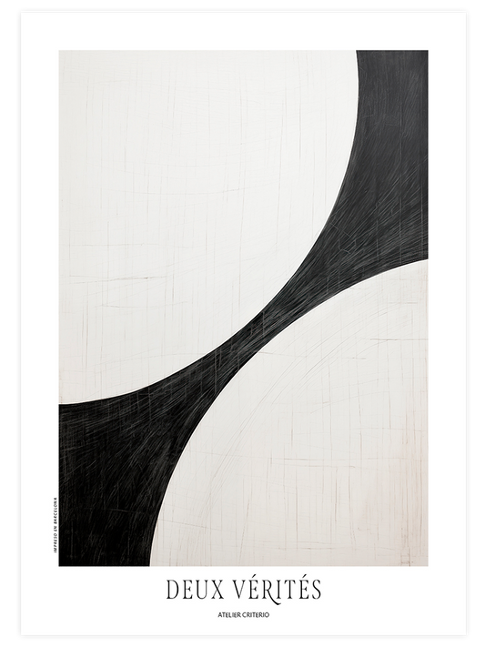 Birbirine bakan gri tonlarda iki yarım dairenin göründüğü ve alt kısımda Fransızca “deux vérités” (iki gerçek) yazısının yer aldığı güzel bir poster. İç mekânlarınıza özgün bir görünüm kazandırmak için güzel bir tasarım. Exclusive Poster. Bu poster atölyemizin bir tasarımcısı tarafından yaratılmıştır. Çerçeve dahil değildir....Normal fiyat 595TLNormal fiyatBirim fiyat /