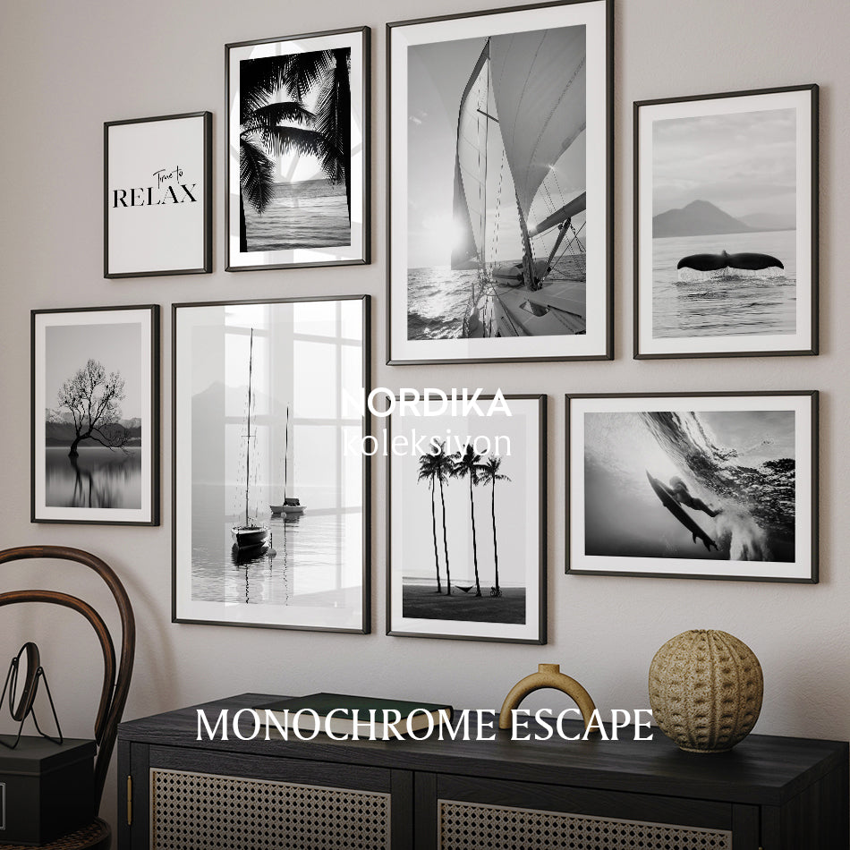 Denizin, özgürlüğün ve maceranın özünü yakalayan siyah beyaz resimlerden oluşan “Monochrome” koleksiyonumuzla zamansız zarafeti keşfedin. Açık denizlerdeki yelkenlilerden sörfçü silüetlerine ve tropikal manzaralara kadar bu koleksiyon, dinginliği sofistike bir dokunuşla yansıtıyor. Modern mekanlar için özel olarak tasarlanmış olan “Monochrome”, sizi gürültüden uzaklaşmaya, derin bir nefes almaya ve ufkun sessizliğine kapılmaya davet ediyor.ALIŞVERİŞE BAŞLA