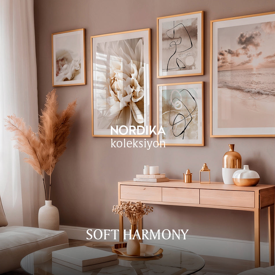 Kendinizi, inceliğe, aydınlığa ve en dingin sanatsal ifadeye bir saygı duruşu niteliğinde olan “Soft Harmony” koleksiyonumuzun zarafetine bırakın. Organik formlar, çiçek motifleri ve soyut desenlerden oluşan sıcak ve nötr tonlu bir renk paletine sahip bu seri, iç mekanınızda dengeli ve sofistike bir atmosfer oluşturmaya yardımcı oluyor. Rahat ve gusto sahibi ortamlar yaratmak için tasarlanan “Soft Harmony”, zamanı durdurmaya, iç güzelliğinizle bağlantı kurmaya ve mekanınıza huzur ve şıklıkla getirmeye davet ediyor.ALIŞVERİŞE BAŞLA