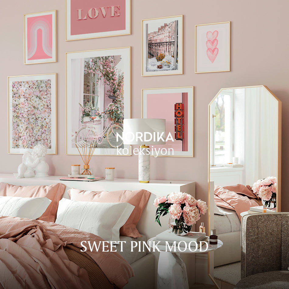 Çiçek sanatının, romantik detayların ve canlı pembe tonların bir araya geldiği bir galeri olan “Sweet Pink Mood” koleksiyonumuzun pozitif enerjisine dalın. Tatlılığı, feminenliği ve tazeliği çağrıştıran görselleriyle bu set, odanızı cezbedici ve şeker gibi bir alana dönüştürüyor. Her tasarımın sıcaklık ve görsel şenlik yaydığı, neşeli ve şık bir ortam arayanlar için idealdir.ALIŞVERİŞE BAŞLA