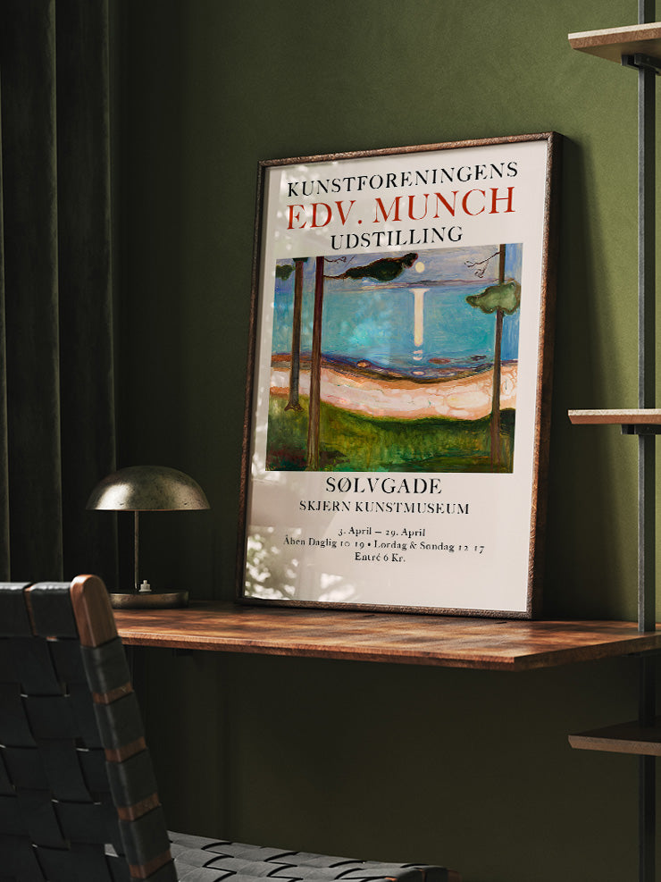 Üzerinde Edvard Munch’a ait bir manzara resminin yer aldığı sergi afişi tasarımı. İç mekânınızı tekdüzelikten uzaklaştırmak ve modern bir dekorasyon elde etmek için bu posteri tercih edebilirsiniz. Bu eser, atölyemizdeki uzman bir restoratör tarafından özenle dijital olarak restore edilmiştir. Edvard Munch Koleksiyonunu Gör