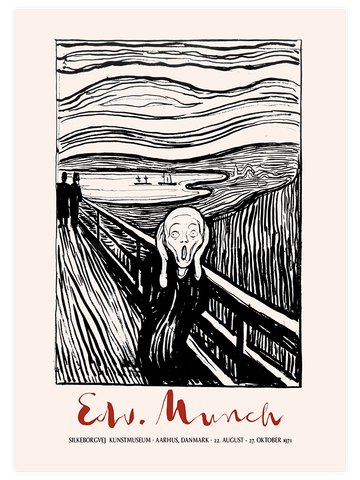 Edvard Munch’un Hint mürekkebi ile yaptığı Çığlık adlı çalışmasının posteri. Arka planda bej zeminde bir göl manzarası ön planda ise çığlık atan bir insan figürü bulunmaktadır. Posterin alt kısmında tasarıma modern bir dokunuş katan ressamın ve eserin adı yer almaktadır. Evinizde hem modern hem klasik bir tarz yakalamak için ideal bir tasarımdır. Bu eser, atölyemizdeki uzman bir restoratör tarafından özenle dijital olarak restore edilmiştir. Edvard Munch Koleksiyonunu Gör
