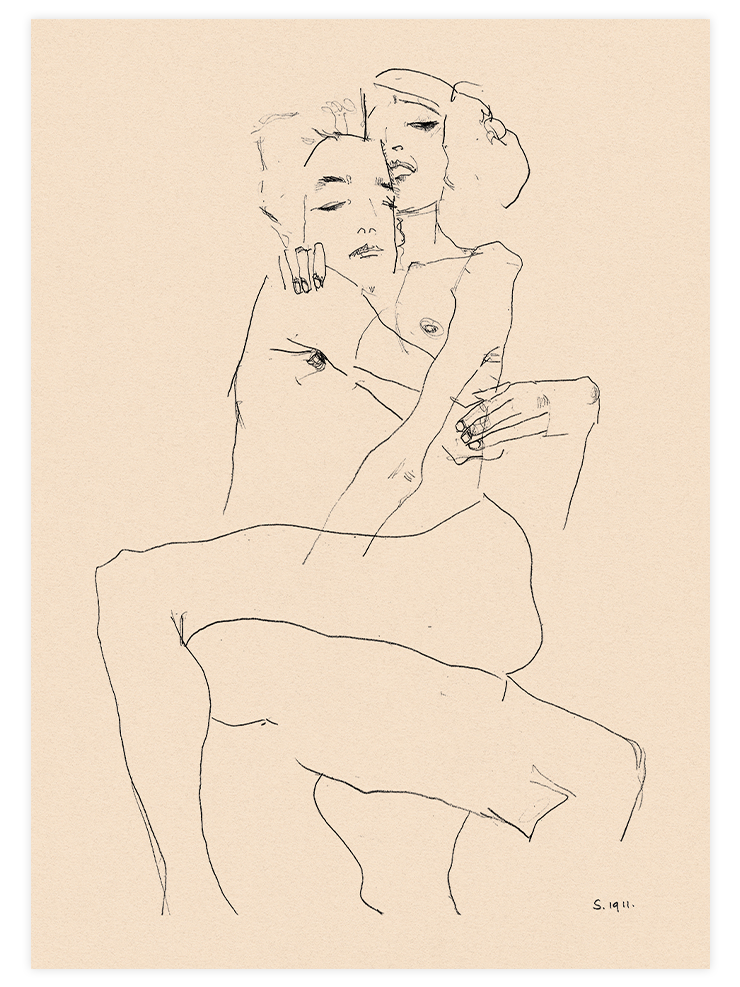 Avusturyalı ressam Egon Schiele’in Birbirine Sarılmış Bir Çift adlı çalışmasının posteri. Yatak odası dekorasyonuna sanatsal bir tılsım vermek isteyenler duvarında bu güzel postere yer verebilir. Bu eser, La Collection'un uzman restoratörü tarafından özenle dijital olarak restore edilmiştir. Egon Schiele Koleksiyonunu Gör