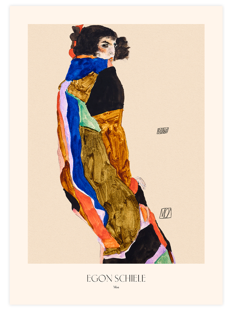 Egon Schiele'nin 1911 yılında yaptığı Moa adlı tablosunun posteri. Posterin alt kısmında şık bir yazı tipi ile ressamın ve eserin adı yer almaktadır. Schiele severlerin beğenisine sunduğumuz bu güzel poster iç mekânlara sanatsal bir dokunuş katmak için harika bir seçenektir. Bu eser, La Collection'un uzman restoratörü tarafından özenle dijital olarak restore edilmiştir. Egon Schiele Koleksiyonunu Gör