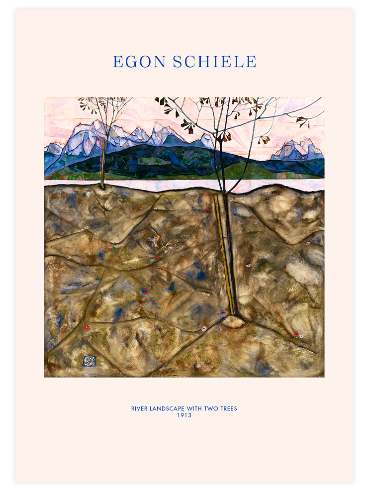 Ressamın 1913 yılında yaptığı İki Ağaçlı Nehir Manzarası adlı tablosunun posteri. Posterin üst kısmında şık bir tipografi ile ressamın adı, alt kısmında ise eserin adı ve yılı yer almaktadır. Bej tonlarda bir zeminde yer alan Schiele’nin bu güzel çalışması iç mekânlara sanatsal bir dokunuş katmak için güzel bir seçenek olabilir. Bu eser, La Collection'un uzman restoratörü tarafından özenle dijital olarak restore edilmiştir. Egon Schiele Koleksiyonunu Gör