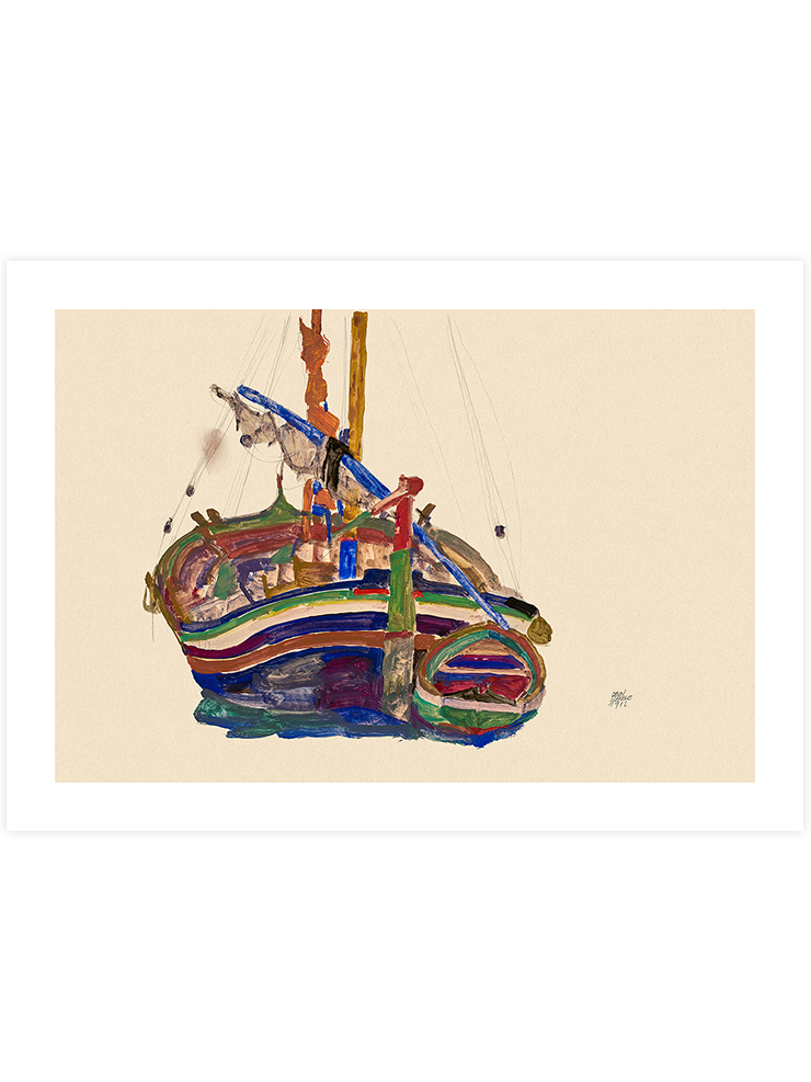 Ressamın bir balıkçı teknesini çizdiği çalışmasının posteri. Bej tonlarda bir zeminde Schiele’in çalışmasının yer aldığı bu poster iç mekânlara sanatsal bir dokunuş katmak için güzel bir seçenek olabilir. Bu eser, La Collection'un uzman restoratörü tarafından özenle dijital olarak restore edilmiştir. Egon Schiele Koleksiyonunu Gör
