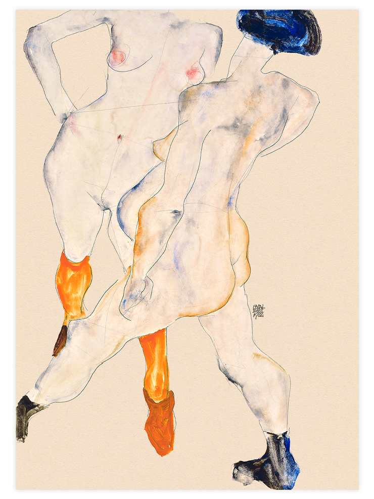 Egon Schiele Two Female Nudes, Standing - Art Print