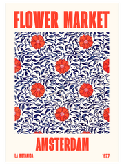 Bej arka planda mavi yapraklı kırmızı çiçek çizimi bulunan güzel bir poster tasarımı. Resmin alt ve üst kısmında kırmızı renkte güzel bir tipografi ile yazılar bulunmaktadır. İç mekânınıza zarif bir dokunuş katmak için ve dekorasyonunuza daha sıcak bir görünüm sunmak için çiçek posterleri harika bir seçenektir.