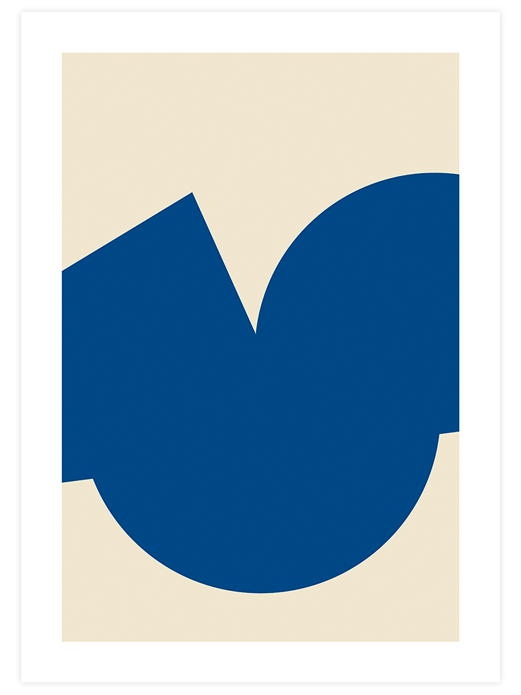 Bej bir zeminde koyu mavi tonlarda yer yer yuvarlak yer yer sivri biçimlerde geometrik bir düzlemin yer aldığı bir grafik poster tasarımı. Bu resim ile zevkinize göre farklı tasarımlarla kombinler yaratıp odalarınıza modern bir görünüm katabilirsiniz. Exclusive Poster. Bu poster Atelier Léger tarafından yaratılmıştır.