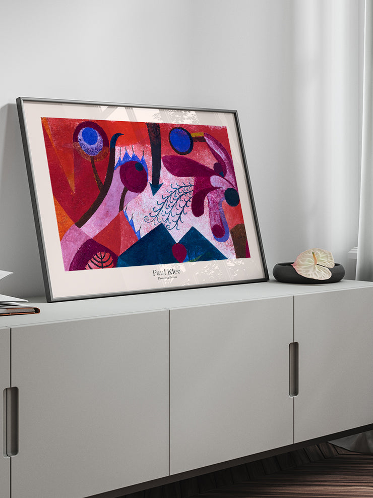Paul Klee’nin 1920 yılında yaptığı Zehirli Meyveler adlı suluboya tablosunun posteri. Klee’nin bu kırmızı tonların ağırlıkta olduğu güzel tablosunun posteri ile yaşam alanlarınıza sanatsal bir dokunuş katın. Posterin alt kısmında güzel bir tipografi ile ressamın ve eserin adı yer almaktadır. Bu eser, atölyemizdeki uzman bir restoratör tarafından özenle dijital olarak restore edilmiştir. Paul Klee Koleksiyonunu Gör