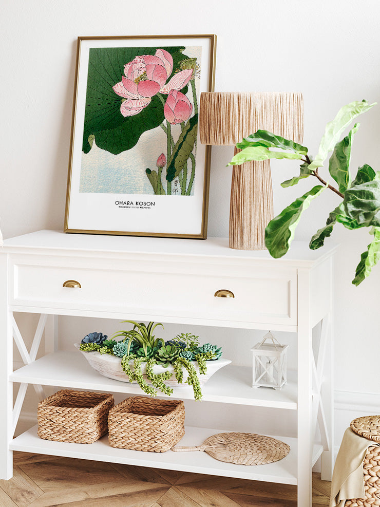 Japon ressam ve ahşap baskı tasarımcısı Ohara Koson’un Açan Lotus Çiçekleri adlı çalışmasının posteri. Posterin alt bölümünde ressamın ve eserin adı yer almaktadır. Yeşil ve pembenin tatlı uyumu ile oluşturulmuş bu eser evinize renk katacaktır. Bu eser, atölyemizdeki uzman bir restoratör tarafından özenle dijital olarak restore edilmiştir. Japan Art Koleksiyonunu Gör