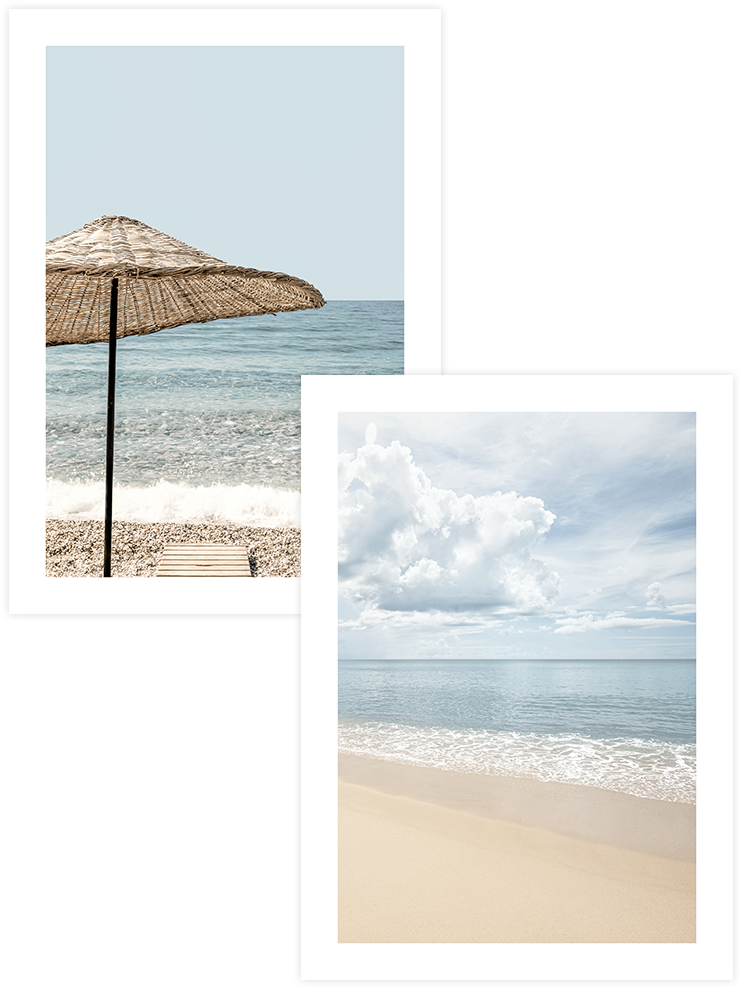 Mavi ve bejin en güzel tonlarının bir arada olduğu yaz ve deniz temalı bu güzel manzaralı poster seti ile güzel dekore edilmiş bir evin keyfini çıkarın. İlham verici poster setlerimiz ile iç mekânınıza farklı ve modern bir görünüm verebilirsiniz.