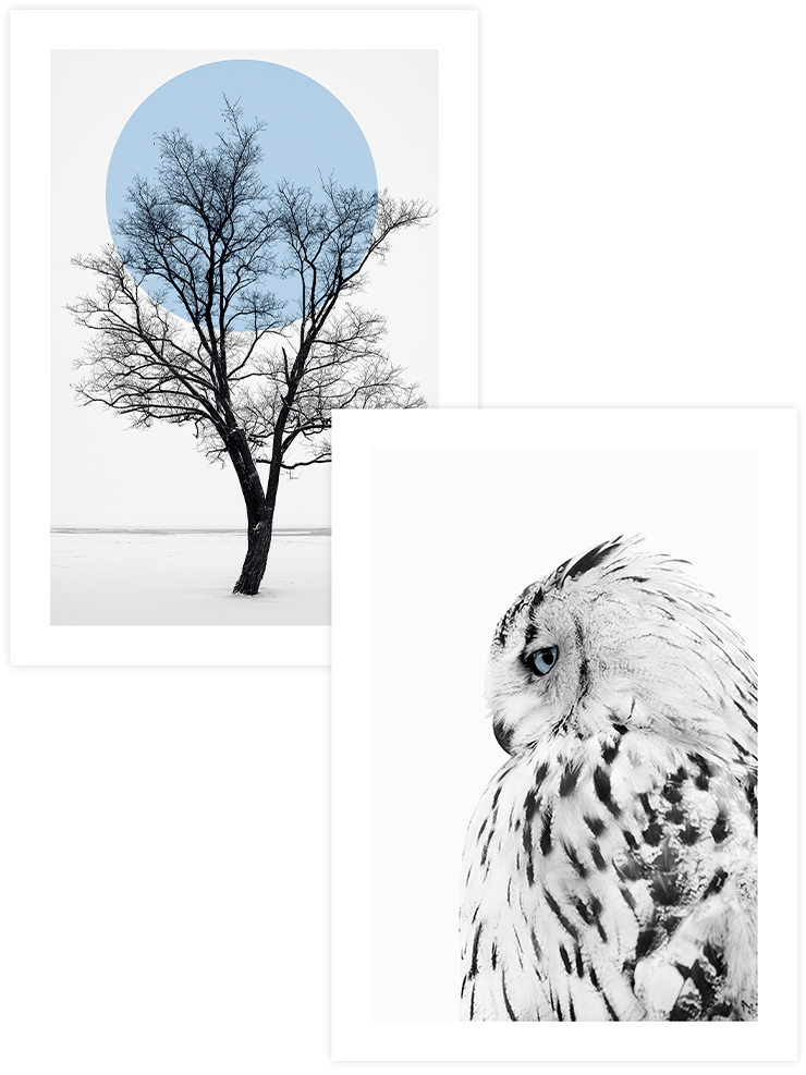 Baykuş posteri ve arka fonunda ay illüstrasyonunun yer aldığı ağaç posterinden oluşan ikili poster seti. Zamansız bir duvar dekorasyonu oluşturmak için muazzam bir kombinasyon. Oluşturduğumuz farklı tarzda poster setlerimizden ilham alın.