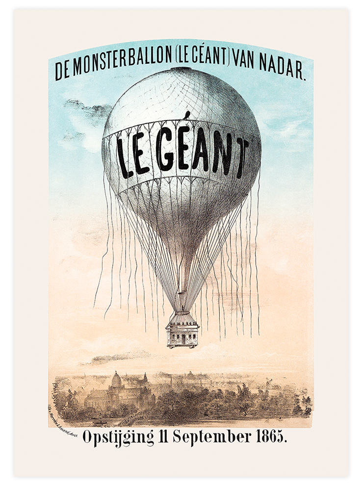 1863 yılında inşa edilen dünyanın en büyük sıcak hava balonu olan “Le Géant” çiziminin yer aldığı vintage reklam afişi. Yaşam ve çalışma alanlarınıza sanatsal vintage bir dokunuş katmak için güzel bir tercih olabilir. Vintage Koleksiyonunu Gör
